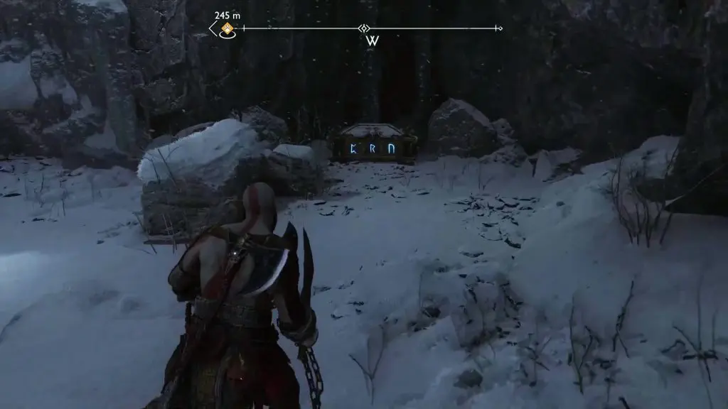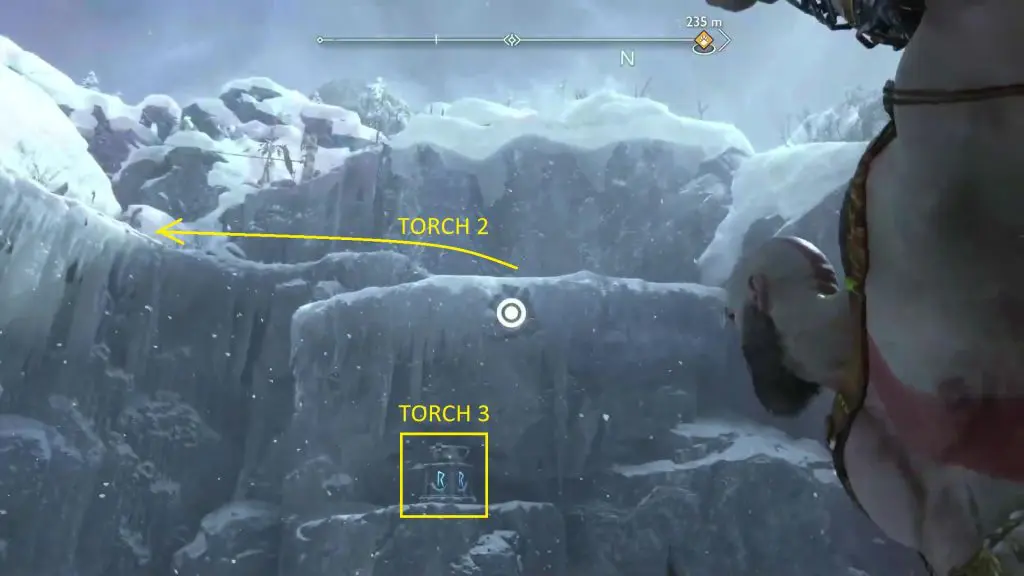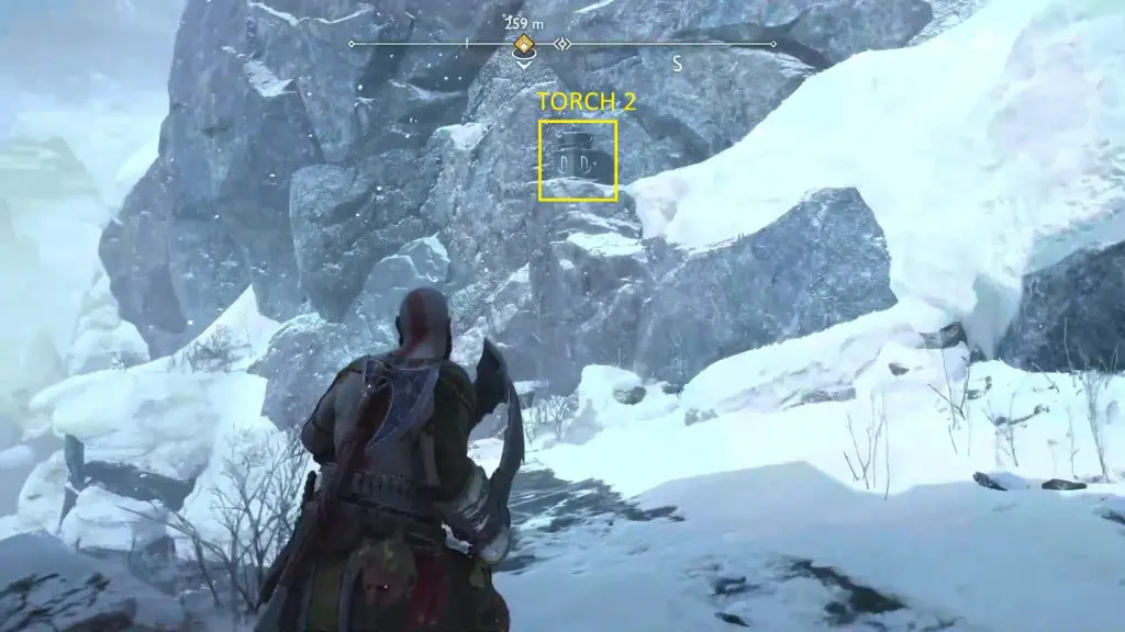 Proceed ahead in the area and you will see the Nornir Chest on the path. To unlock the chest, you will have to light three torches.