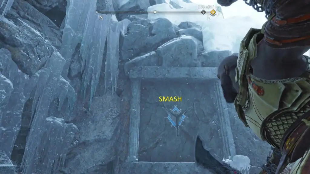 After getting the raven, hang down from the ledge. Then smash the wall in the front as shown in the pictures below to get the legendary chest.