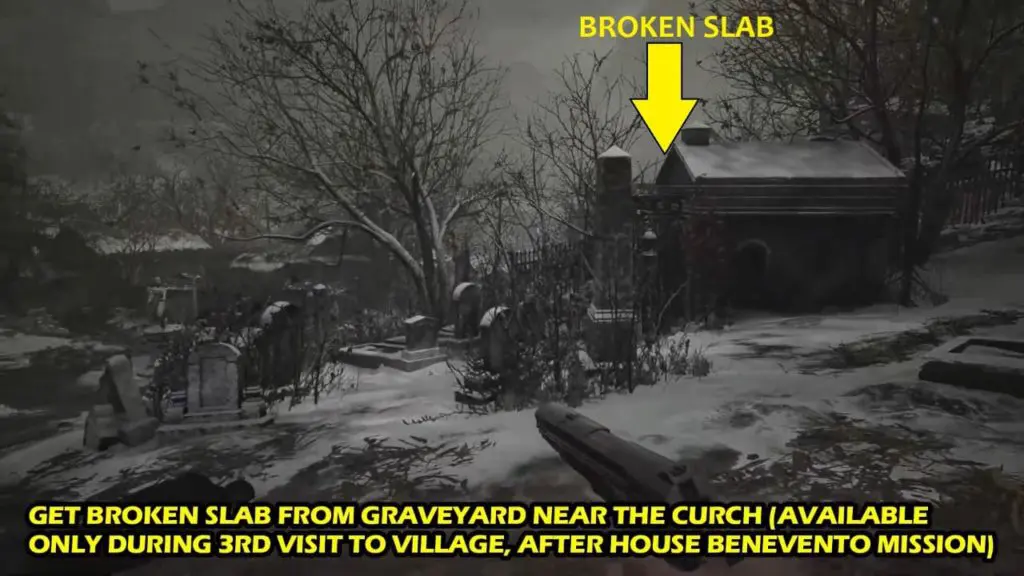 - Collect the broken slab from the crypt. This broken slab available only during the third visit to the village after house Benevento mission