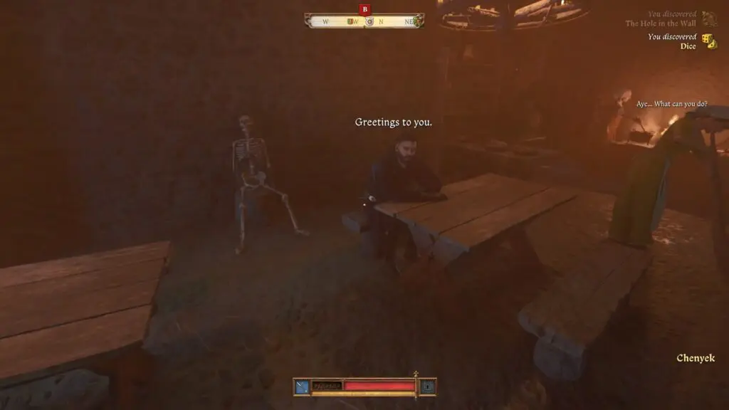 As you progress through the quest The Hole in the Wall, you’ll be tasked with finding an NPC named Goatskin. To begin your search, head to the Tavern in Kuttenberg and speak with an NPC named Chenyek. You’ll need to pass a skill check to earn his respect.
