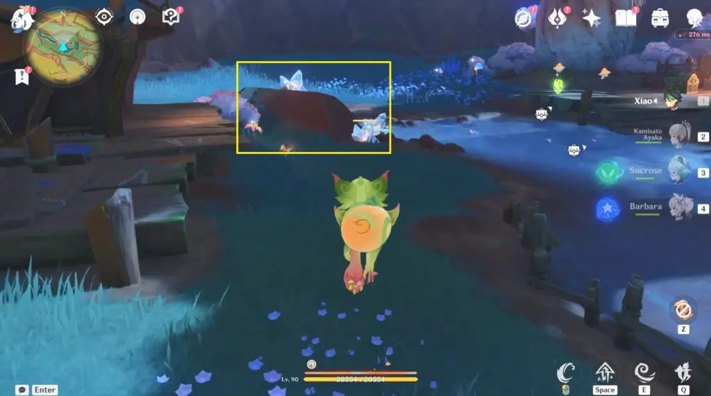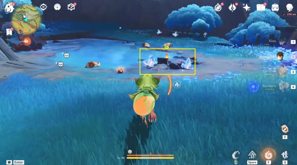 Break the Condessence Crystals around the rock and pick it up to make the underground creature move. Keep following the creature until it reaches its resting place.
