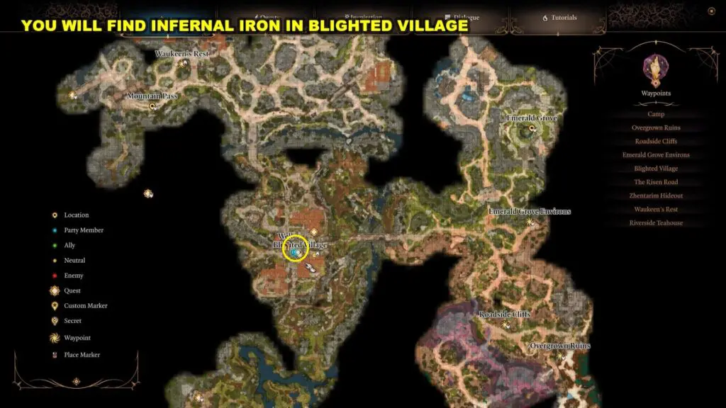 The earliest location where you can find Infernal Iron in Baldur’s Gate 3 is at the north end of Blighted Village. Proceed north from the Blighted Village waypoint and enter the house on your right.