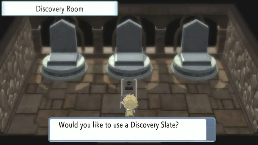 At Ramanas Park, you can trade Discovery Slates for Mysterious Shards. You can find Mysterious Shards by digging in the Grand Underground. You can trade three small mysterious shards or 1 big mysterious shard for Discovery Slates. Here we need three Discovery Slates to catch three pokemon i.e Regice, Regirock, and Registeel.