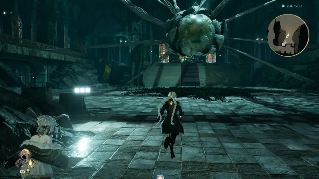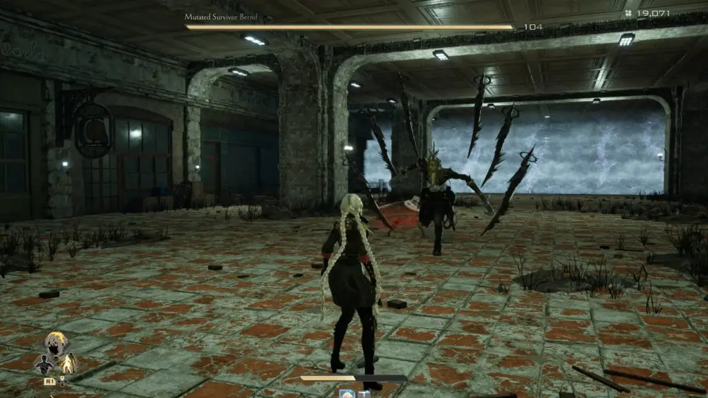 Once you reach the other side, go up the stairs and then head down another set of stairs to reach a boss area. Enter the arena and defeat the boss called Mutated Survivor Bernd.