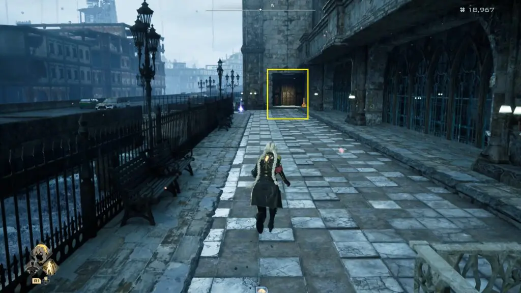 After reaching the Front Gate Mistle, go to the south side of the building and look for an elevator. Ride the elevator up to enter Josee’s Outpost. Once inside, follow the straight path ahead and deal with or avoid enemies along the way.