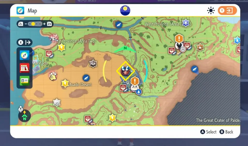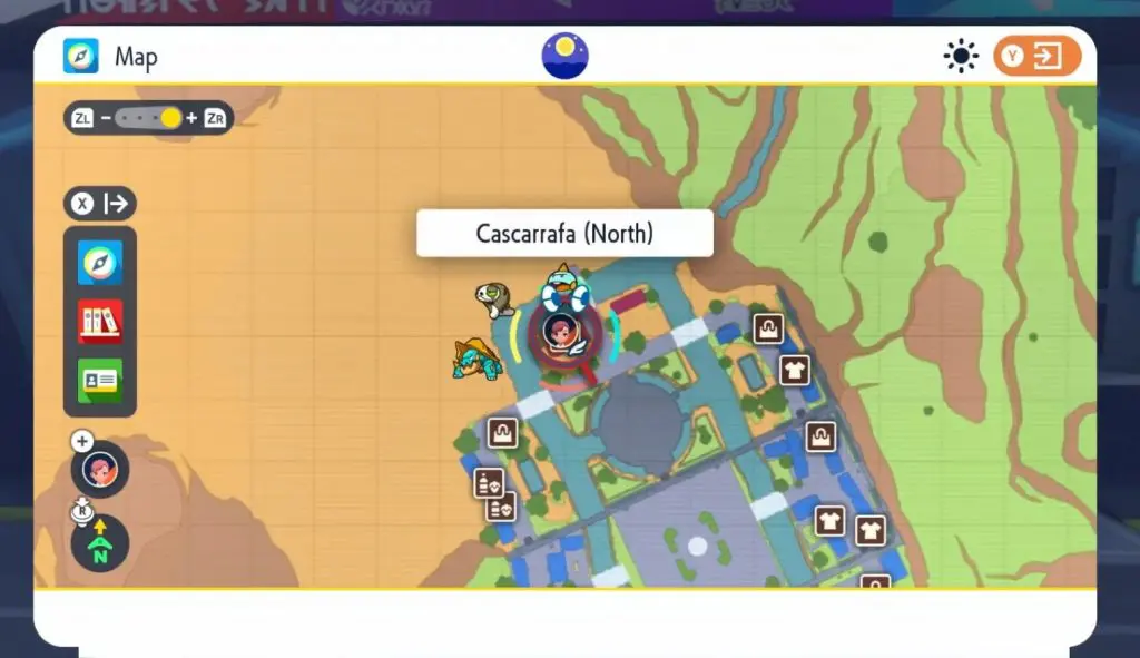 Fly to Pokemon center “Cascarrafa (North)”.
