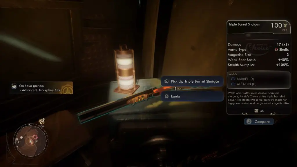 Once the door unlocks, head inside Otto’s secret room to collect your rewards. You’ll find an Advanced Decryption Key, 440 bits, a Triple Barrel Shotgun, and a text log.