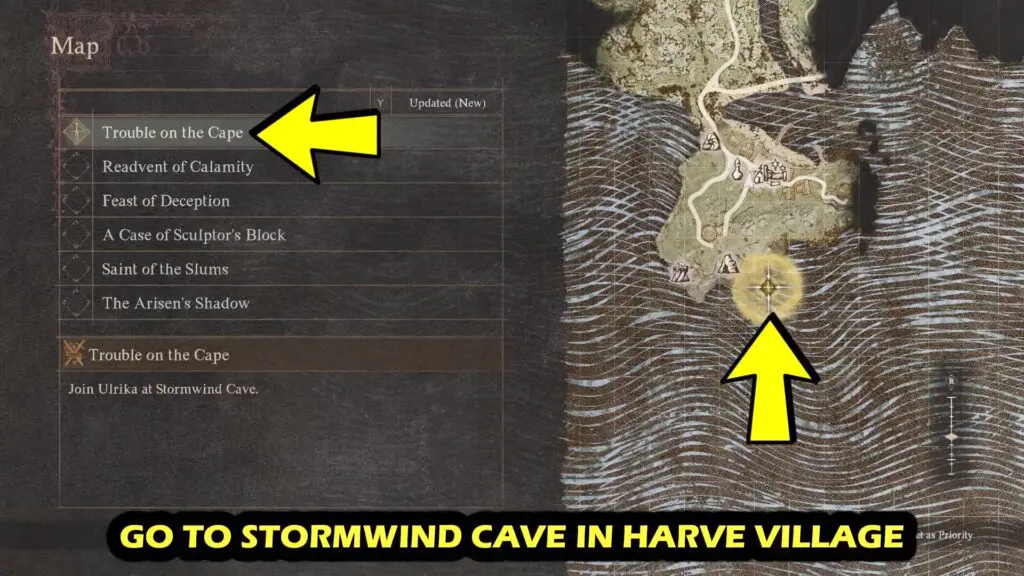 After the cutscene between Jonas (Village Leader) and Ulrika, proceed to the Stormwind Cave in Harve Village.