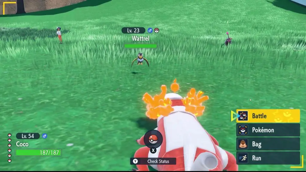 According to its Pokédex entry, Wattrel “Lives by the sea” and “Flies over the sea during the day.” You may find Wattrel in various locations in the Paldea. Wattrel inhabits near the sea. They come in three colors: yellow, red, and orange.