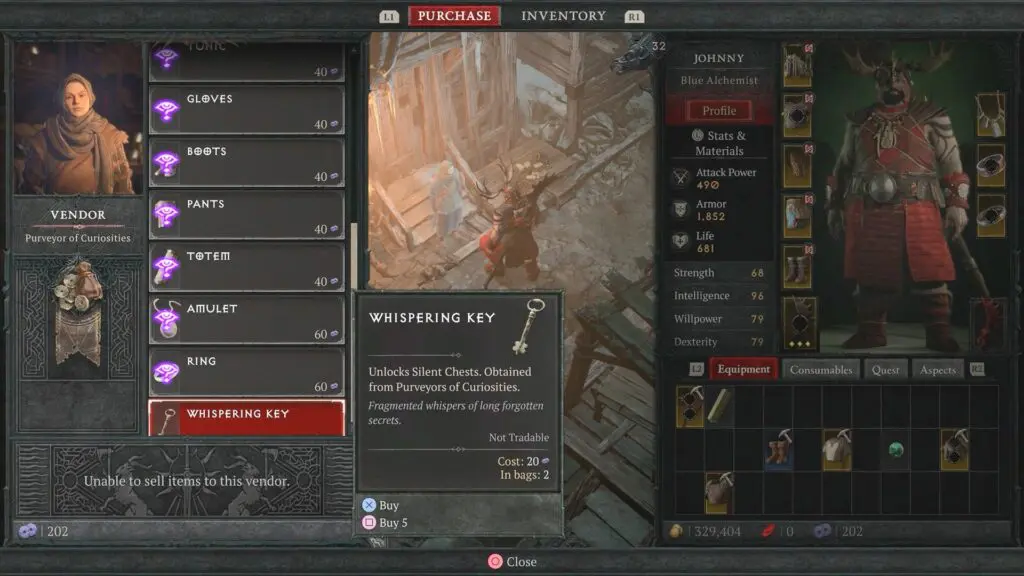 To find the Whispering Keys, the player needs to unlock a special shop in the main town. Now, as you guys progress through the main campaign, you will unlock the ability to get into this shop.