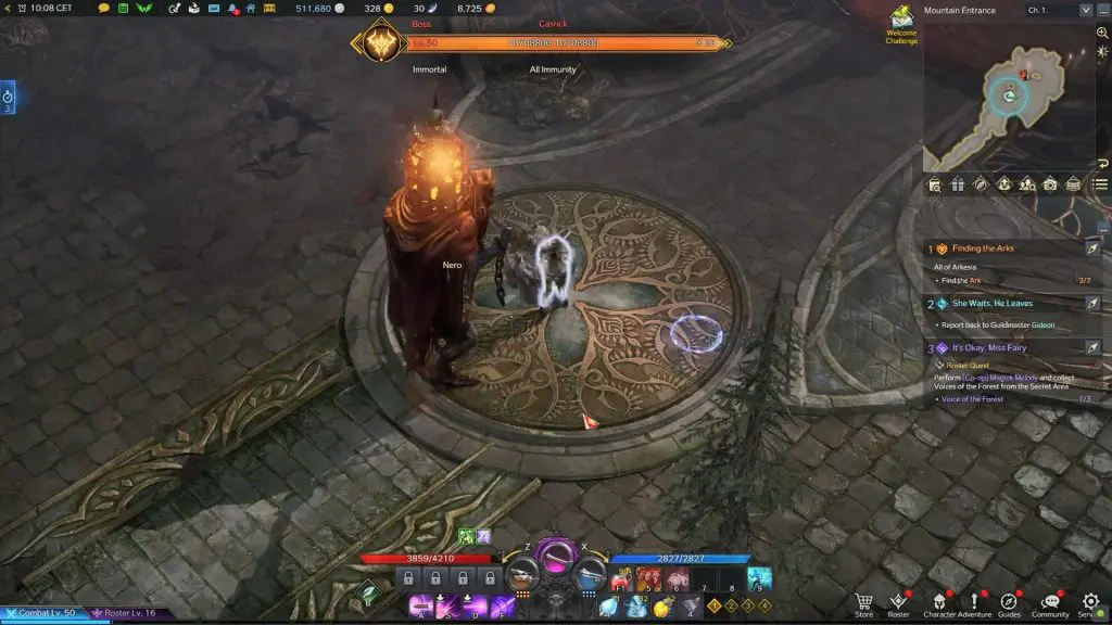 Casrick is a slow runner, so you can take him on alone if you have fast attacks, but fighting in a group will be preferred. Casrick’s attacks will all be timed, so you will be able to see where he will strike before he does. Before he lands his attack a red full or semi-circular pattern will form on the ground, which you can dodge easily.