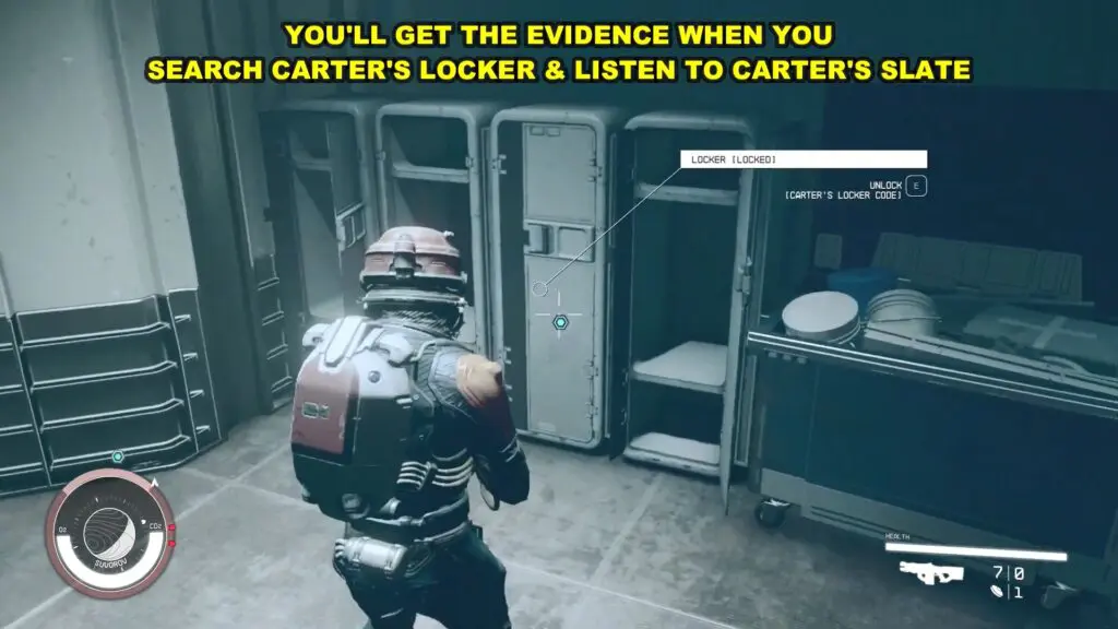 As you progress through the mission “Echoes of the Past“, you will receive the objective “Search Carter’s Locker ” after searching Kryx’s Cell for Information. At this point, you can start looking for the previous mission objective “Search for Evidence“