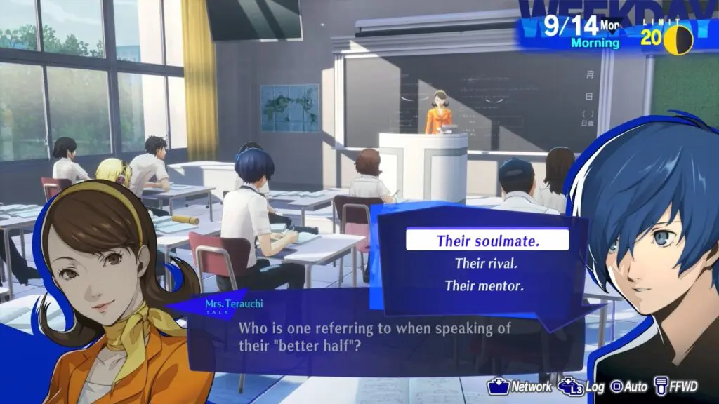 This article will guide you through the September Class Answers for the Phrase “Who is one referring to when speaking of their ‘better half’?” in Persona 3 Reload, released on February 2nd, 2024.