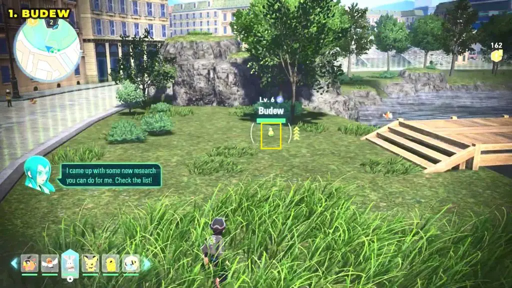 Budew is a Grass/Poison Type Pokemon that appears in Pokemon Legends: Z-A. It can be found on the left side after entering the area from the south.