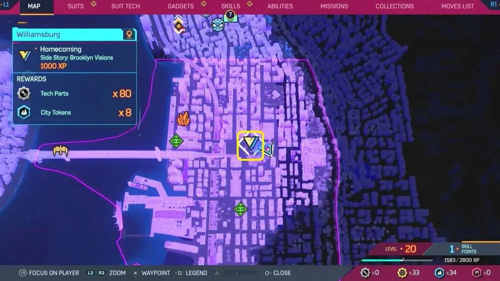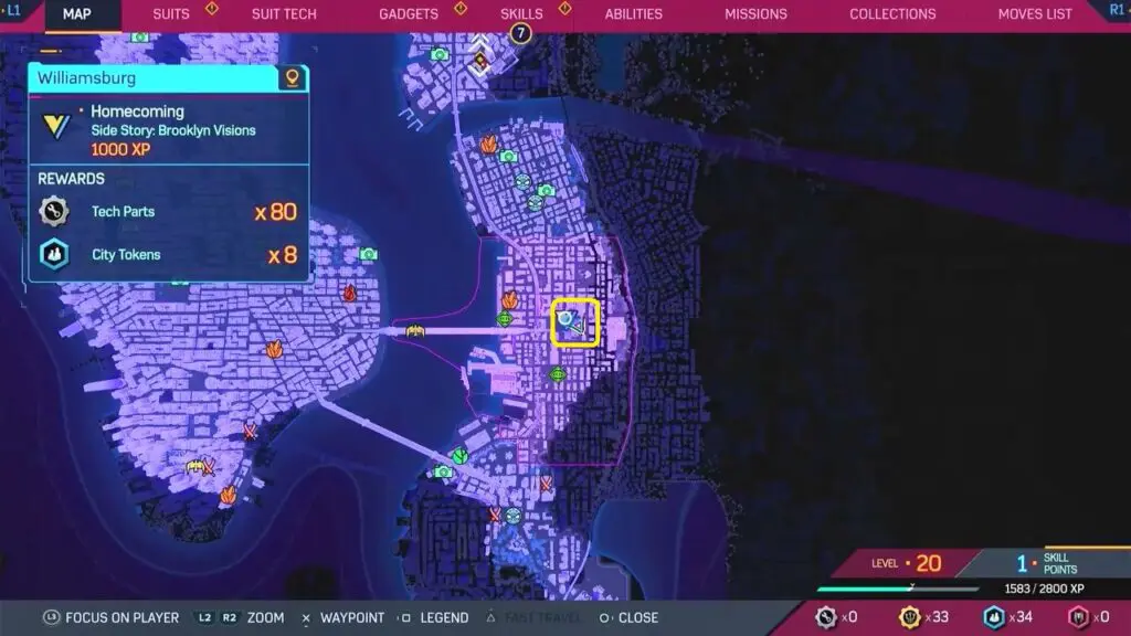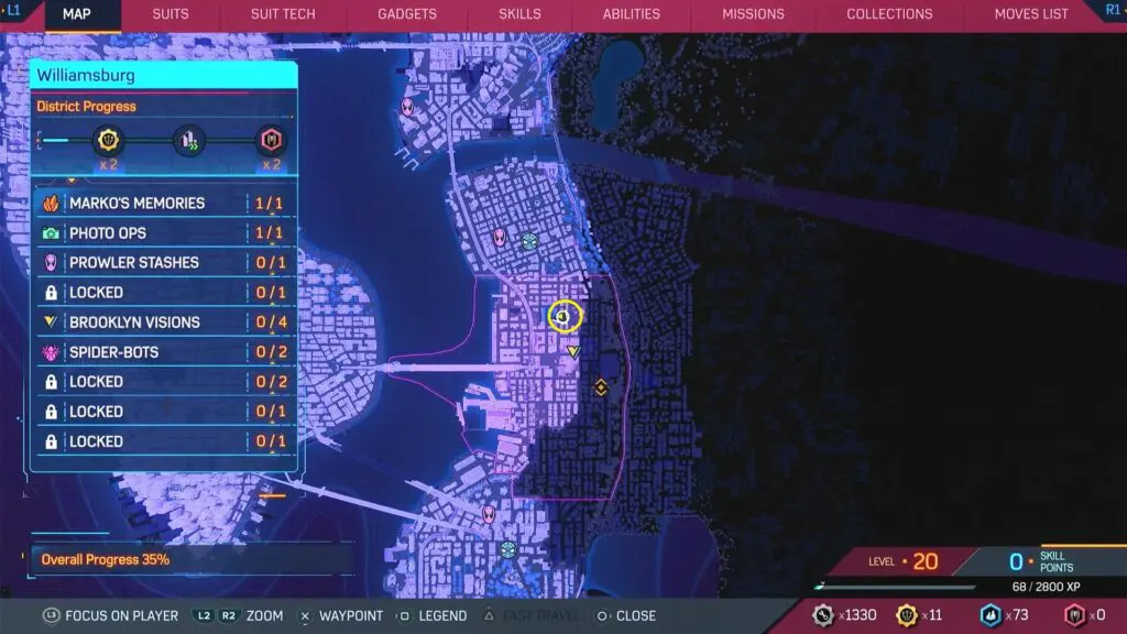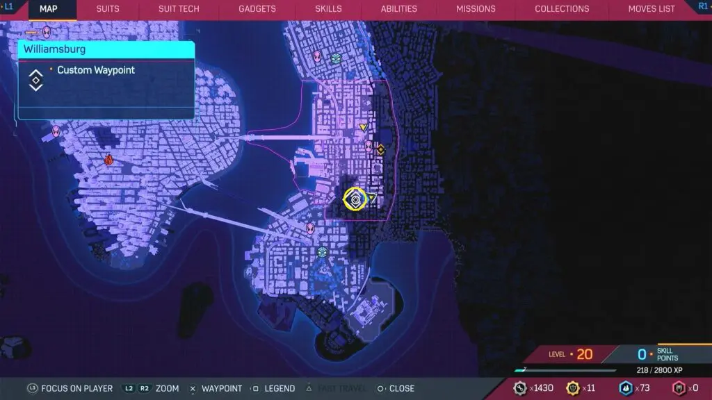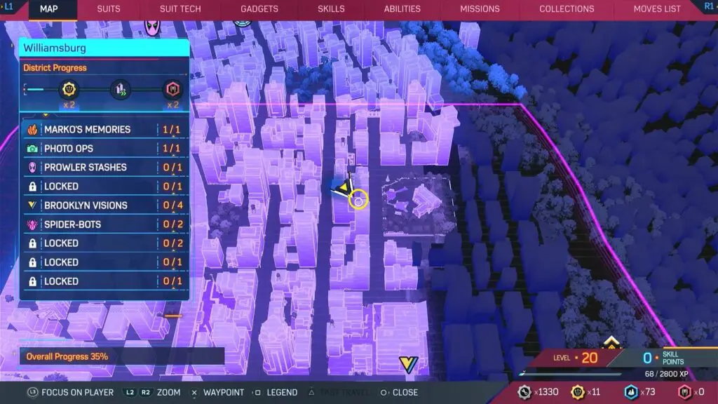 This guide shows the location of all collectibles in the Williamsburg district in the Spiderman 2 game, which was released on 20 October 2023. The list of Williamsburg Collectibles is shown below.