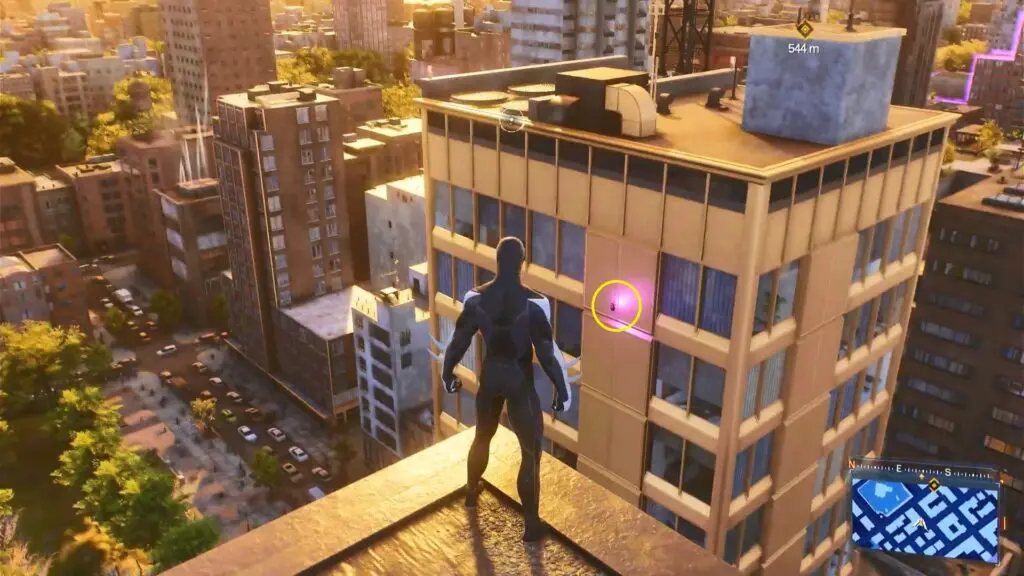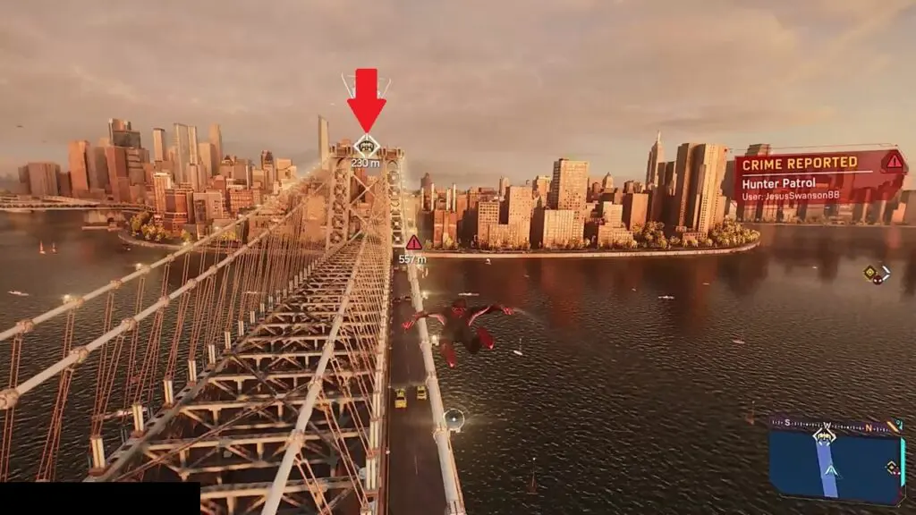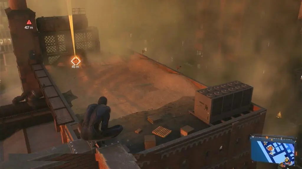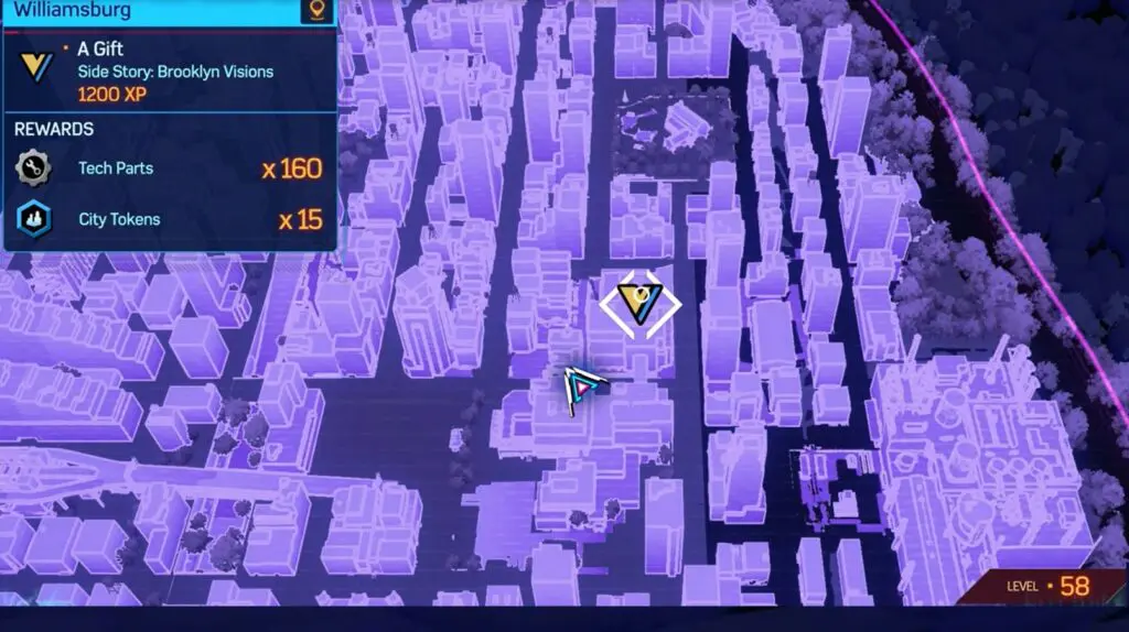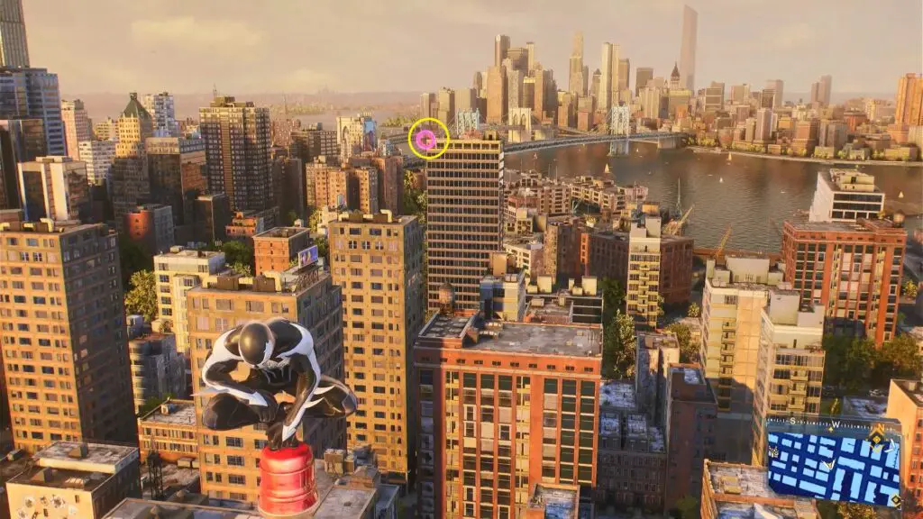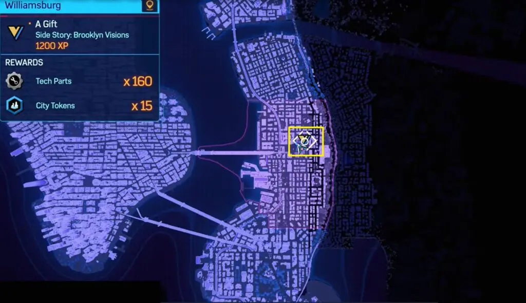 The Prowler Spider-Bot is in the northeastern part of Williamsburg. To find it, head to the southwest corner and spot the tall silver apartment building. Climb up to the top of the building’s northern side, and you’ll find the Spider-Bot near the top.