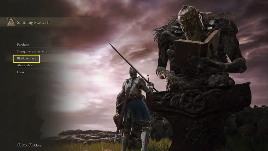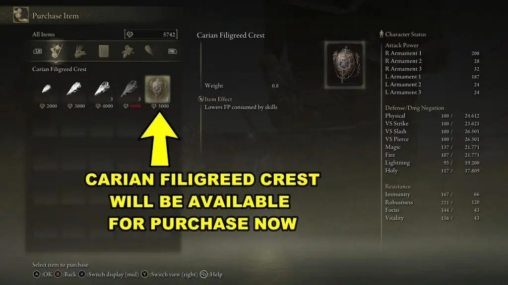 Keep talking to him until you get the “Blaidd sent me” option. Now Falian Filigreed Crest will also be available for purchase at 5000 Runes. This completes the quest.