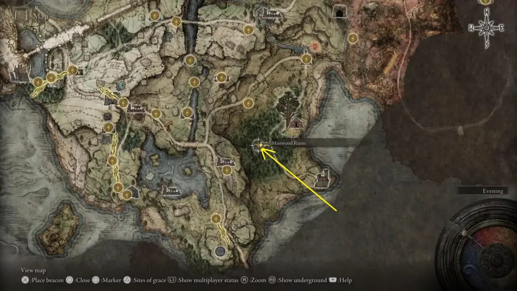 To start the quest, first, you will need to visit Mistwood Ruins in Limgrave East as shown below.