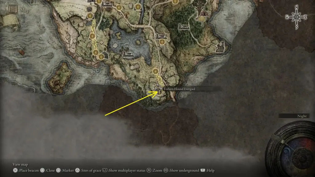 Go to Forlorn Hound Evergaol, which is at the southern portion of Limgrave as shown below.