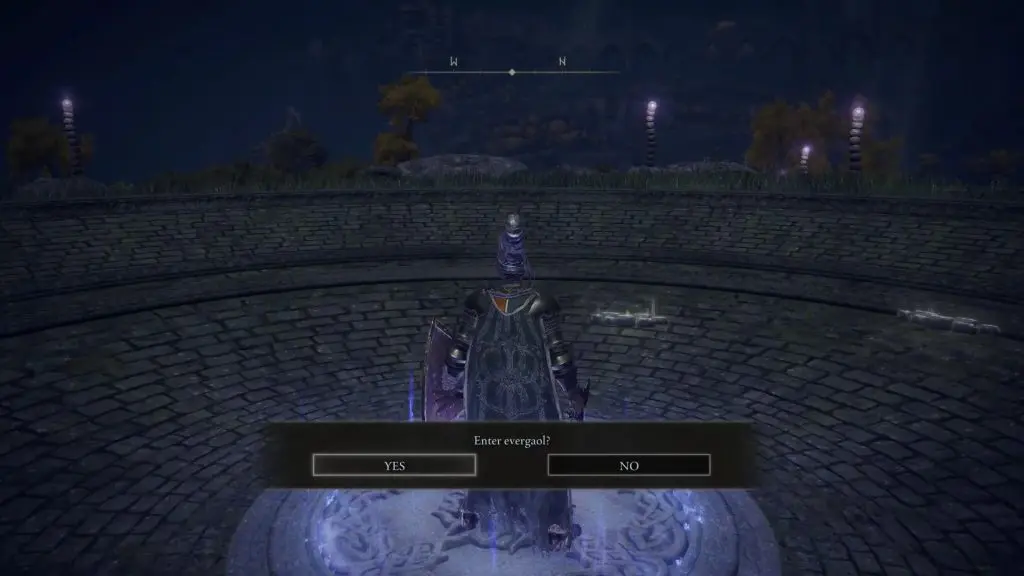 Stand on the switch at the center, and you can summon “Blaidd the Half Wolf” to help you in the fight.