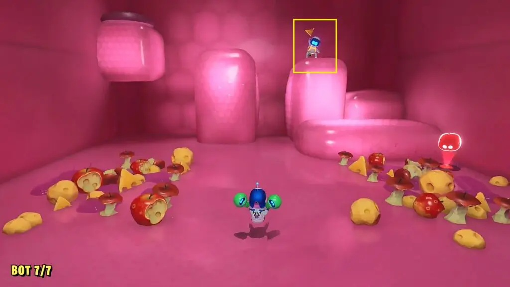 Towards the end of the level, you will be eaten by a giant worm. As you fall down inside the worm’s stomach, you will see a bot straight ahead as shown in the picture below.
