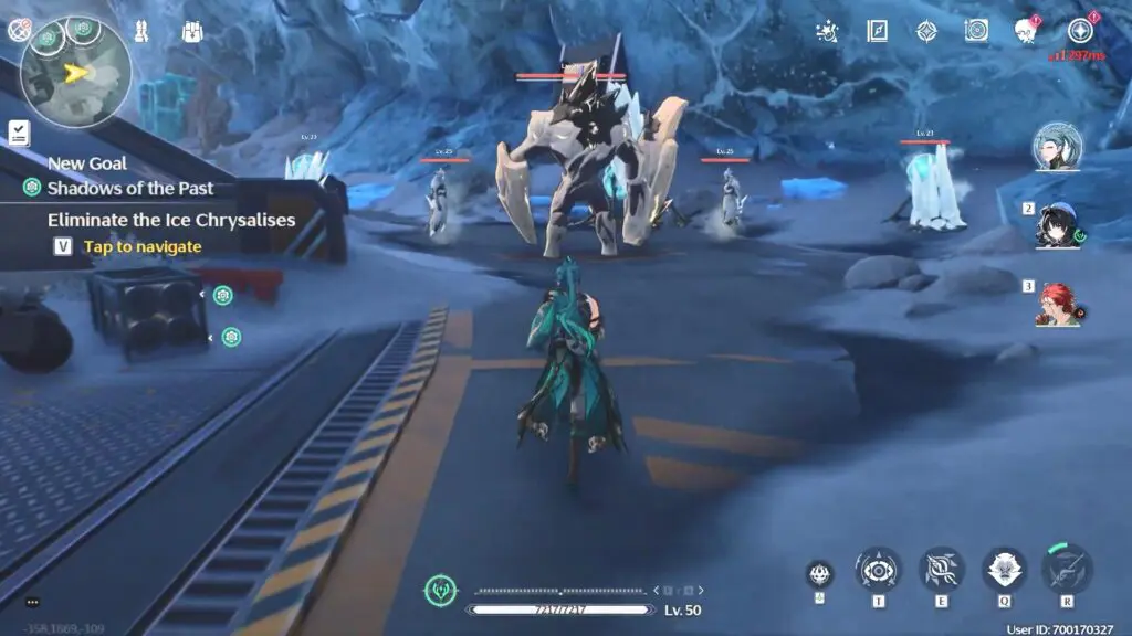 Proceed to your left and defeat a group of enemies, consisting of three Ice Chrysalises. You will encounter Level 26 enemies at this location. There are three groups of Ice Chrysalises in the area.