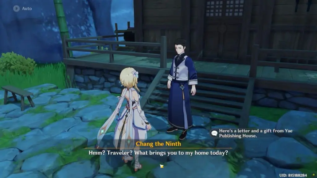 When the quest begins, your first goal will be to “Talk to Chang the Ninth”. You can find Chang’s house at Qingce Village, Liyue. Simply walk up to his house and speak with him to complete this portion of the quest. The below image shows the location of Chang in Qingce Village.