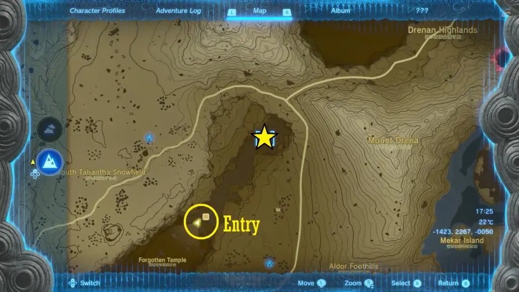 Mayausiy Shrine is located in the west of the Great Hyrule forest and it can be reached via Forgotten Temple. The location is marked below on the map.