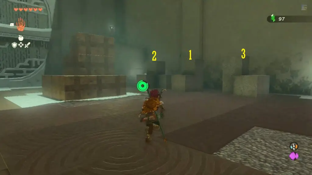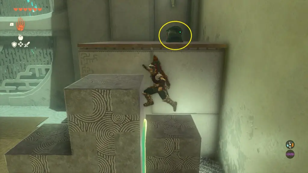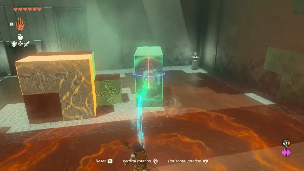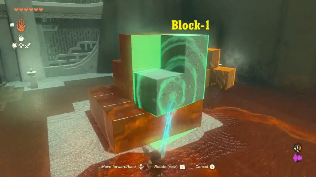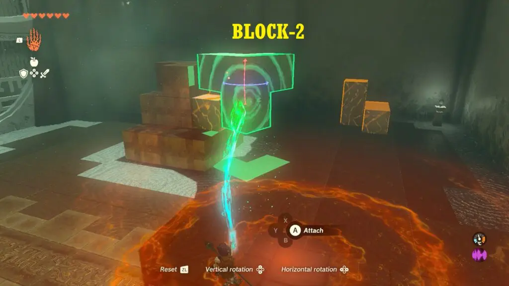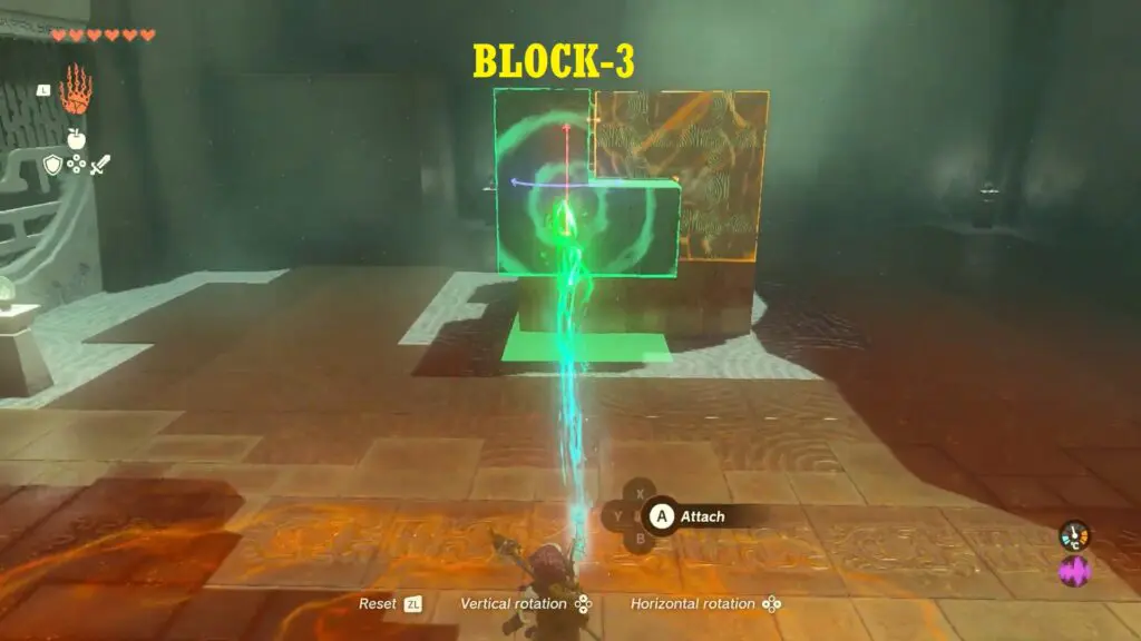 In the next room, you will find three blocks to join together. To reach the chest located at the right corner of the room, start by connecting any two blocks together and climbing on top of them.