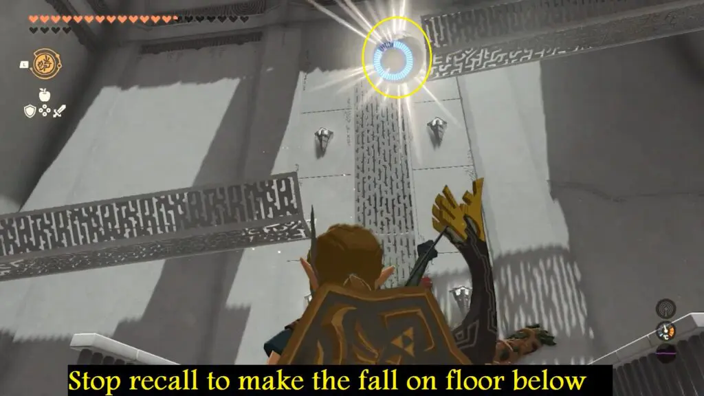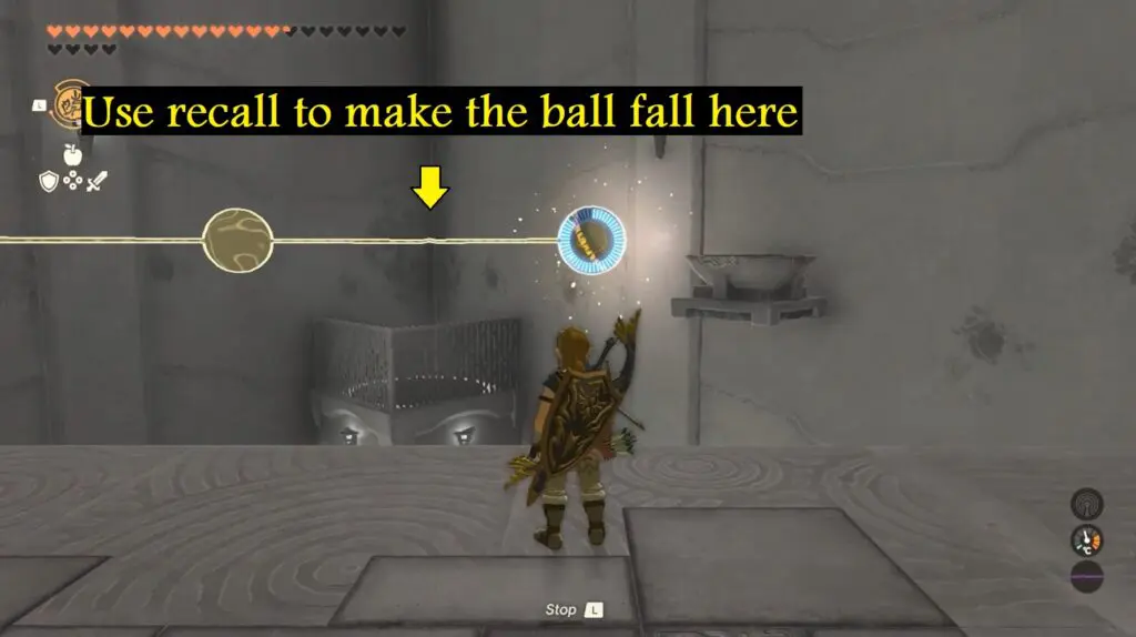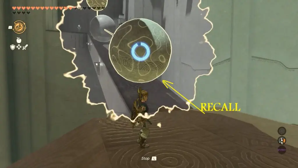 Then, activate Recall on the ball, directing it back to the top. However, while the ball is positioned in the middle of the gap, promptly cancel the Recall ability.