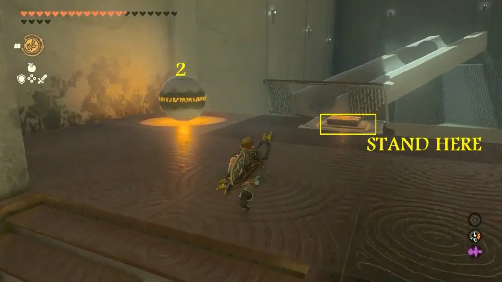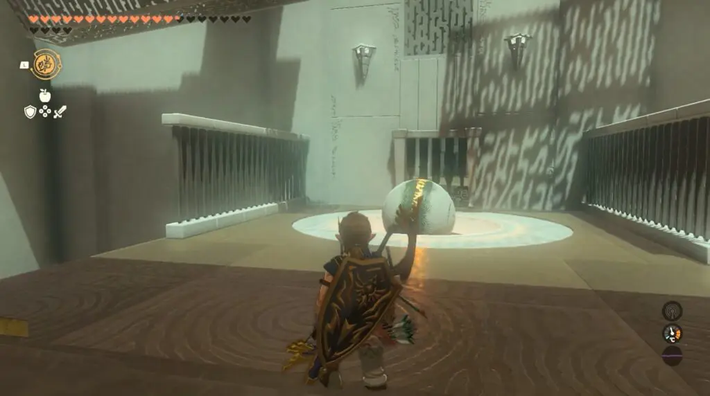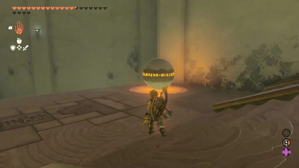 In the first room, you will see a giant ball rolling down the ramp. To proceed, apply the Recall ability to the ball, causing it to rotate in the opposite direction, allowing you to pass.